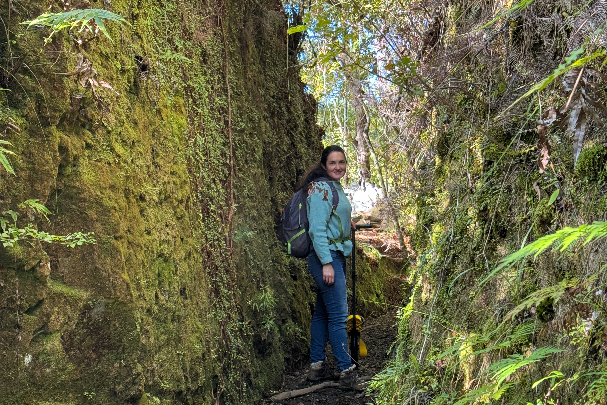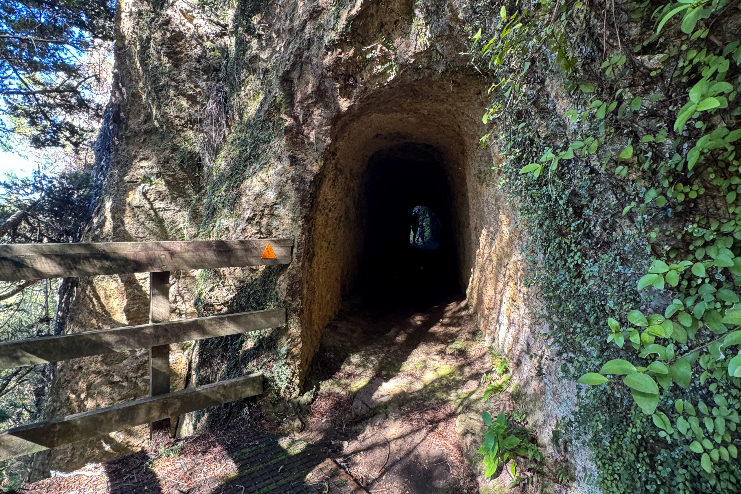 On the way back, we headed uphill along the Main Range Track, which includes some steps and gradually opens up to nice views of the river below. We then turned off onto the Water Race Track, a short but impressive section that cuts into the hillside. In places, the track is carved deeply into the terrain and passes through several narrow, dark tunnels.