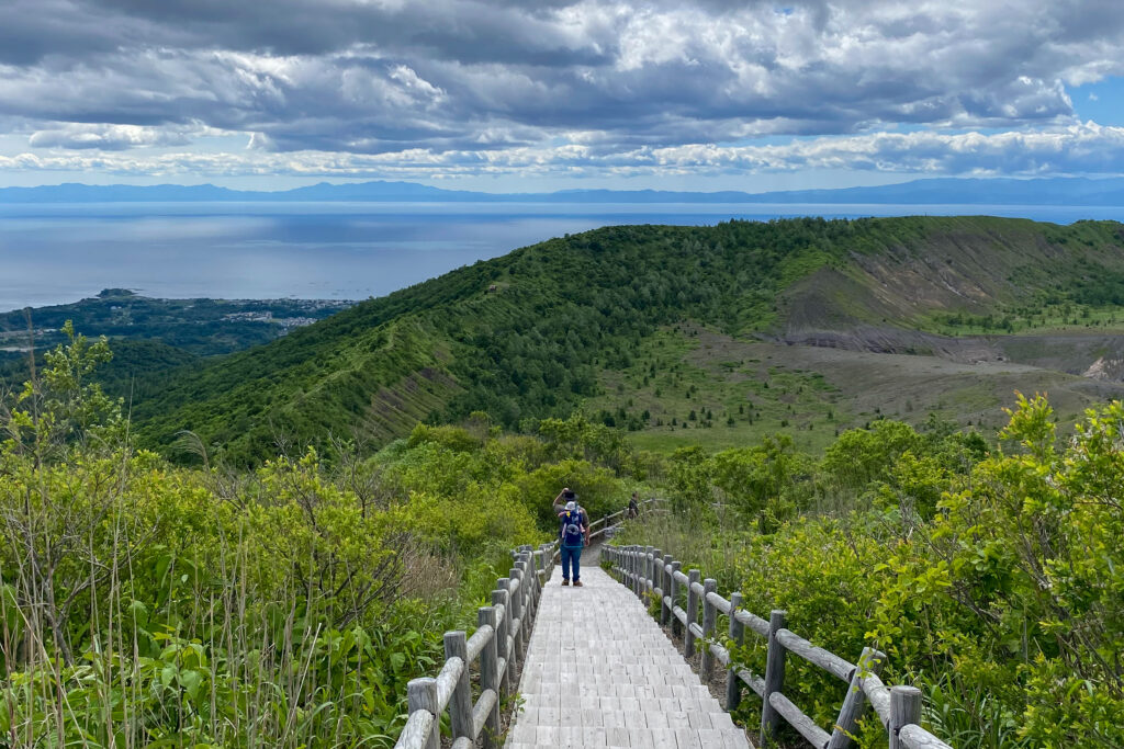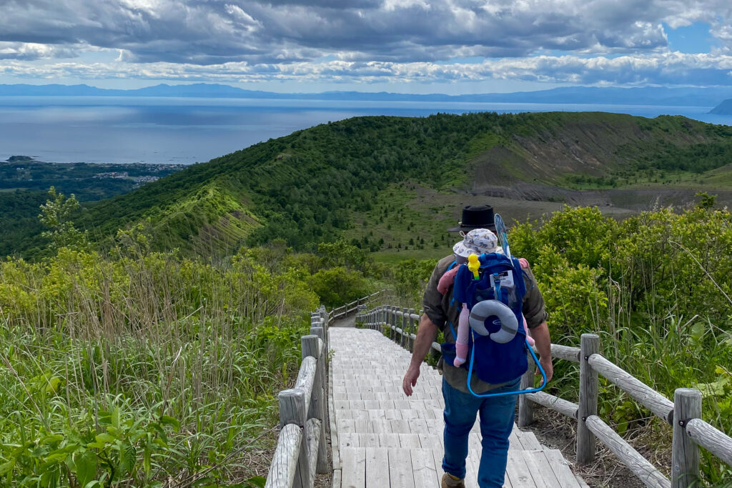We set off on the well-built path towards the Usu Crater Observation Deck. From the observation deck, where most people stop, we decided to continue down the full outer rim loop towards the Minami-gairinzan Lookout.